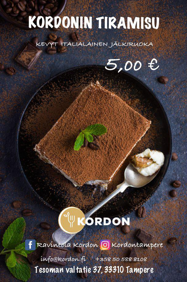 Vuonna 2025 Kordon valittiin Tamperelainen-lehden äänestyksessä koko Tampereen 5. parhaaksi lounaspaikaksi!